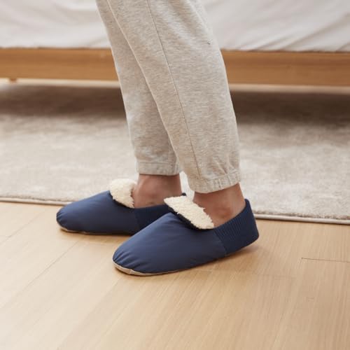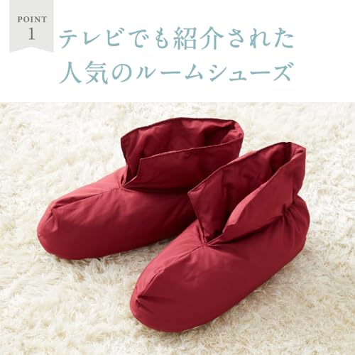 ・機能ワタを使用したあったかルームシューズ。ふんわり素材の裏ボアでしっかり暖かさをキープ。